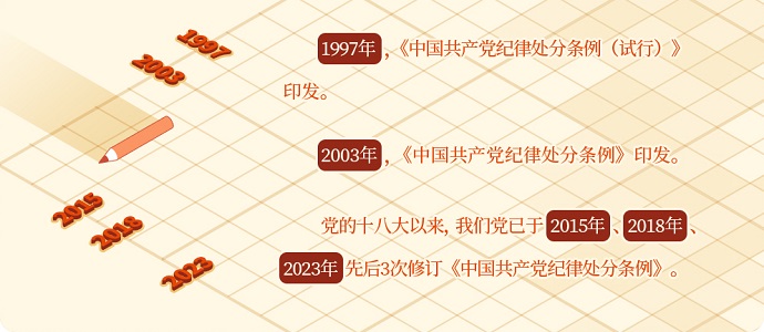 2023年12月,中共中央印發(fā)了修訂后的《中國共產(chǎn)黨紀律處分條例》,這是黨的十八大以來,我們黨第3次修訂《中國共產(chǎn)黨紀律處分條例》。下面,我們一起回顧《條例》如何與時俱進,不斷修訂完善。
