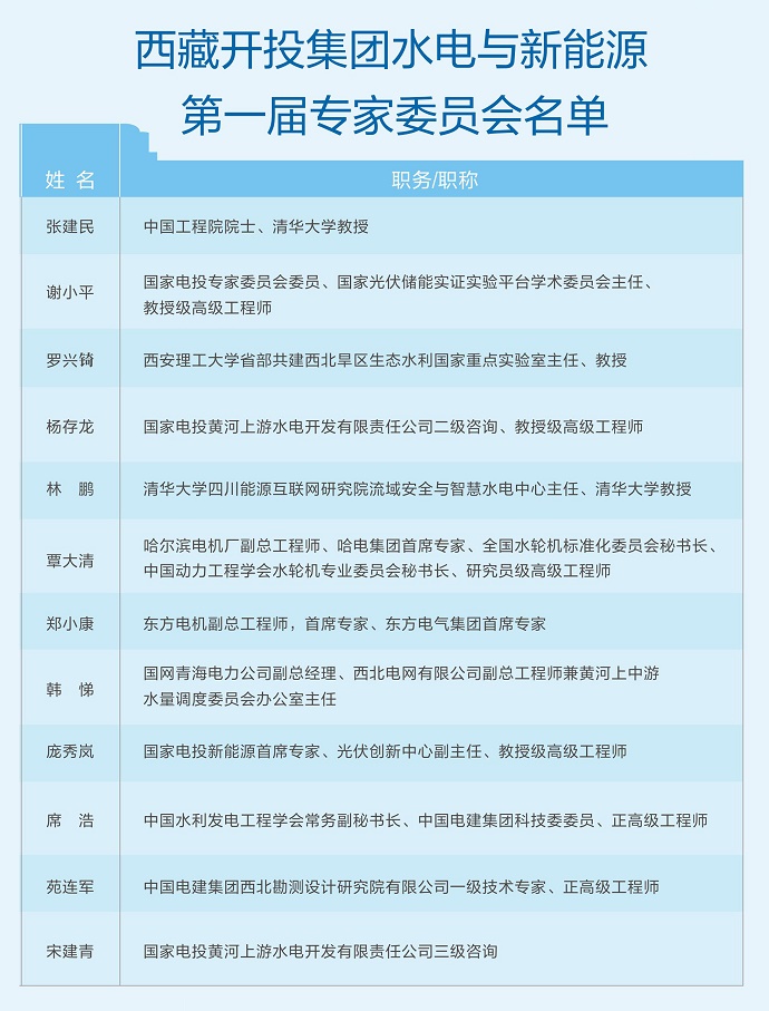 祁騰武在致辭中指出,西藏開投集團(tuán)作為自治區(qū)國有重點(diǎn)企業(yè)和區(qū)內(nèi)唯一的以清潔能源為主業(yè)的產(chǎn)業(yè)集團(tuán),參與了金沙江上游、瀾滄江上游、藏中清潔能源基地開發(fā)建設(shè),穩(wěn)步推進(jìn)開發(fā)新型儲能和氫能項(xiàng)目,探索光伏光熱發(fā)電新技術(shù),積極開展碳匯交易,正在牽頭開展藏東南清潔能源基地和藏北清潔能源基地前期工作,并將參與雅下開發(fā)。專家委員會是西藏開投集團(tuán)的智囊團(tuán),對于開投更好把握清潔能源行業(yè)發(fā)展趨勢、借鑒成功經(jīng)驗(yàn)、拓寬決策思路、推廣應(yīng)用新技術(shù)、做到科學(xué)決策將起到?jīng)Q定性的作用。希望各位專家一如既往地關(guān)注和支持開投,為開投建言獻(xiàn)策、把脈問診,為增強(qiáng)開投的科技創(chuàng)新能力和可持續(xù)發(fā)展能力把方向、當(dāng)參謀,為西藏建設(shè)國家清潔能源基地,打造新型電力系統(tǒng)示范區(qū)、清潔可再生能源利用示范區(qū)“一基地、兩示范”貢獻(xiàn)智慧和力量。