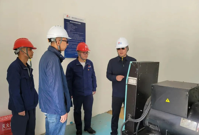 集團黨委副書記、副董事長、總經(jīng)理劉剛(右一)嘎堆水電站開展安全生產(chǎn)檢查。