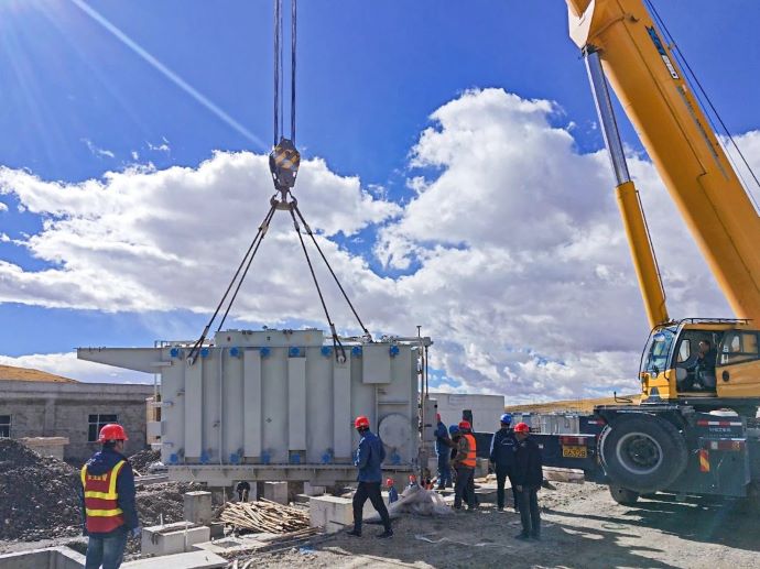 色尼區(qū)達(dá)嘎普獨(dú)立儲能項(xiàng)目svg預(yù)制艙吊裝。吳昊澄 攝