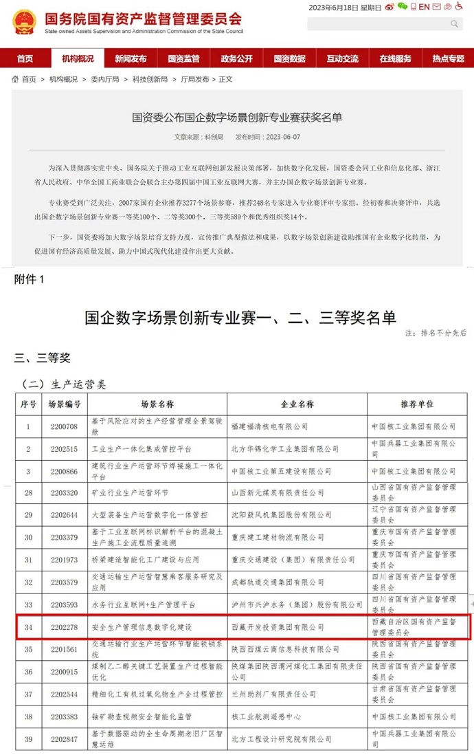 捷報(bào)傳來(lái)丨西藏開(kāi)投集團(tuán)榮獲國(guó)企數(shù)字場(chǎng)景創(chuàng)新專業(yè)賽生產(chǎn)運(yùn)營(yíng)類三等獎(jiǎng)