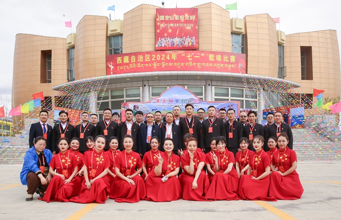 6月28日晚,西藏阿里群眾文化藝術(shù)館人潮涌動,歌聲飛揚(yáng)。由自治區(qū)黨委宣傳部主辦的“西藏自治區(qū)2024年迎‘七一’暨‘唱支山歌給黨聽’紅色歌曲歌詠比賽決賽正式拉開帷幕,共有來自全區(qū)不同單位行業(yè)的15支代表隊(duì)伍同臺競技,共同獻(xiàn)禮黨的百年華誕。當(dāng)晚21時(shí),開幕式準(zhǔn)時(shí)開始。在多彩燈光的映襯下,象雄古韻·天上阿里的原生態(tài)和《再唱山歌給黨聽》《沒有共產(chǎn)黨就沒有新中國》《我和我的祖國》等一曲曲耳熟能詳?shù)募t色歌曲交相輝映、相繼登場,將全區(qū)各族兒女和廣大黨員干部職工愛黨愛國愛藏的情懷淋漓盡致展現(xiàn)。