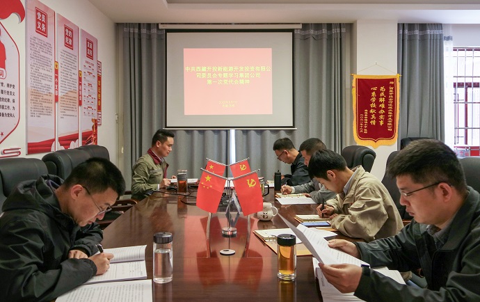 會(huì)議要求,一要深刻認(rèn)識(shí)集團(tuán)公司第一次黨代會(huì)的重大意義和豐富內(nèi)涵,把學(xué)習(xí)好、宣傳好、貫徹好黨代會(huì)精神作為當(dāng)前一段時(shí)間最大的政治任務(wù),迅速在新能源公司上下掀起學(xué)習(xí)黨代會(huì)精神的熱潮。通過(guò)黨委理論學(xué)習(xí)中心組集中學(xué)習(xí)、支部會(huì)議、研討會(huì)等多種方式,堅(jiān)持集中學(xué)習(xí)和個(gè)人自學(xué),通讀報(bào)告與專題研討相結(jié)合,確保學(xué)習(xí)宣傳貫徹取得實(shí)實(shí)在在的效果。二要將學(xué)習(xí)集團(tuán)公司第一次黨代會(huì)精神與改進(jìn)作風(fēng)狠抓落實(shí)工作結(jié)合起來(lái),與按期推動(dòng)吉塘一期20萬(wàn)千瓦光伏項(xiàng)目結(jié)合起來(lái),并以此為主線,所有工作都要往這條主線聚焦。從黨委到各黨支部、各部門逐級(jí)有序深入組織學(xué)習(xí)宣傳貫徹黨代會(huì)精神活動(dòng),確保學(xué)習(xí)貫徹黨代會(huì)精神實(shí)現(xiàn)全覆蓋,確保學(xué)習(xí)一個(gè)不少,人人參與。三要把新能源公司各項(xiàng)工作融于集團(tuán)公司發(fā)展戰(zhàn)略全局考慮,聚焦“四件大事”“四個(gè)確保”,聚力“四個(gè)創(chuàng)建”“四個(gè)走在前列”,切實(shí)把集團(tuán)公司第一次黨代會(huì)精神落實(shí)到新能源公司主責(zé)主業(yè)和今年各項(xiàng)工作目標(biāo)及明年工作超前謀劃之中,推動(dòng)學(xué)習(xí)貫徹往實(shí)里走、往深里走,為助力集團(tuán)公司高質(zhì)量發(fā)展凝聚磅礴力量,在集團(tuán)公司“二次創(chuàng)業(yè)”中以實(shí)績(jī)展現(xiàn)新能源公司新?lián)?dāng)、新作為、新形象。