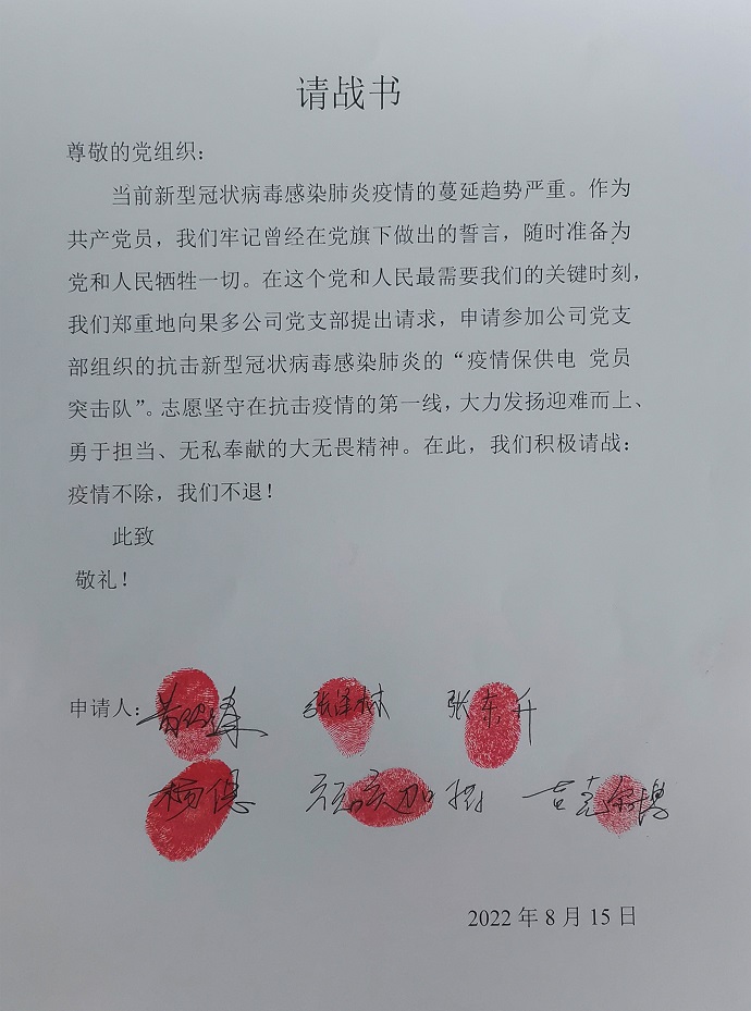(黨員突擊隊(duì)請戰(zhàn)書 王強(qiáng)攝)