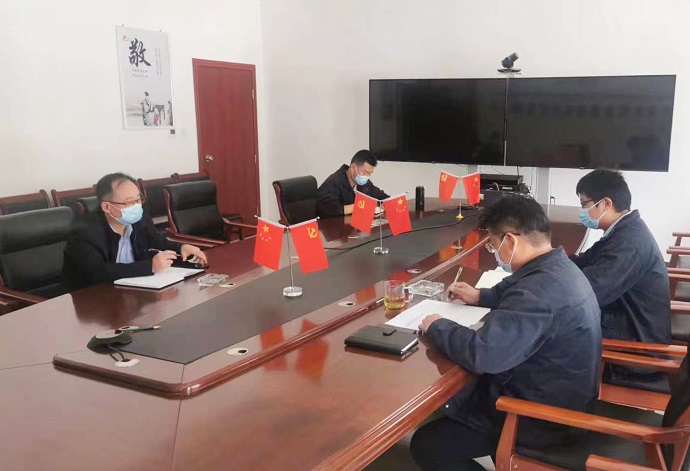 (公司領(lǐng)導(dǎo)給門衛(wèi)講解防疫要求 鄭永山攝)