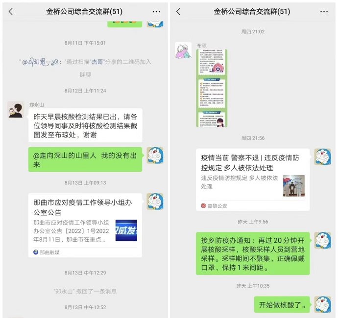 付少龍通過微信工作群及時(shí)將區(qū)、市、縣、公司疫情防控工作決策部署、防控政策措施、疫情防控違法違規(guī)行為等傳達(dá)給全體員工,引導(dǎo)員工做好自身防護(hù)的同時(shí),做到不信謠、不傳謠、不恐慌、不松懈。