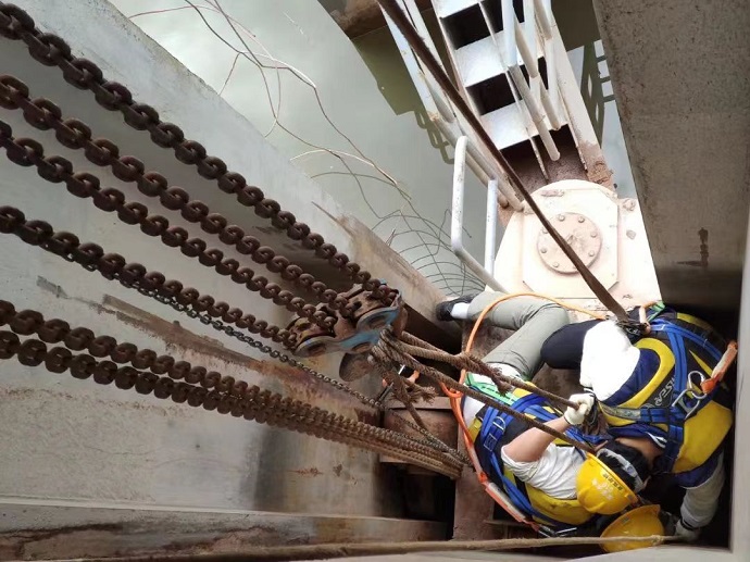 9月5日11時30分,果多水電站上游來水量突增,水庫攔污漂變浮箱無法及時上浮,導(dǎo)致大量垃圾飄進進水口區(qū)域,給機組運行造成一定的安全隱患。吉克爾博接到部門安排后,馬上帶領(lǐng)兩名青年員工到浮箱上利用千斤頂、手動葫蘆等工具開展處理。經(jīng)過分析、討論,判定攔污漂卡澀的原因為導(dǎo)向輪長期受力不均發(fā)生變形,利用千斤頂反向作用力和手拉葫蘆的牽引力,最終將攔污漂卡澀問題解決。
