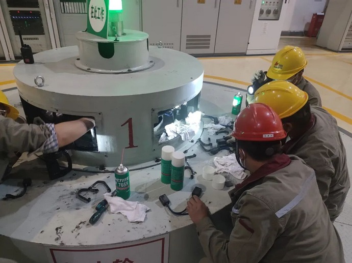 “作為奮斗在一線的運維人員,保證機組平穩(wěn)安全運行就是我的使命。”孫繼東如是說。8月18日,110千伏竹卡變電站10千伏室1325PT柜保險熔斷,他立即帶著兩名運維人員前往110千伏竹卡變電站及時消缺以保證用戶用電。9月12日,藏中孤網(wǎng)運行期間利用機組短暫的停機機會,群策群力對1號機組碳刷進行清潔更換,保證機組安全穩(wěn)定運行。
