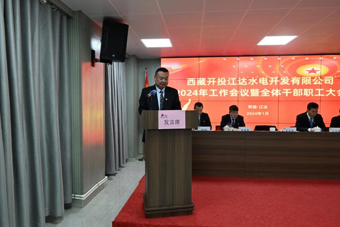 1月22日,西藏開投JD水電開發(fā)有限公司召開2024年工作會(huì)議暨干部職工大會(huì),會(huì)議認(rèn)真?zhèn)鬟_(dá)西藏開投集團(tuán)2024年工作會(huì)議暨二屆二次職工代表大會(huì)精神,總結(jié)2023年工作,科學(xué)研判當(dāng)前面臨的形勢(shì)和主要任務(wù),安排部署2024年重點(diǎn)工作,動(dòng)員JD水電公司全體員工踔厲奮發(fā)、勇毅前行,為奮力開創(chuàng)JD水電公司高質(zhì)量發(fā)展新局面而團(tuán)結(jié)奮斗。