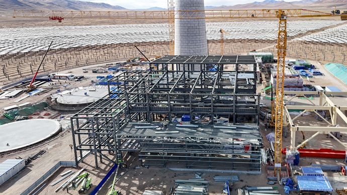 安多土碩光熱項(xiàng)目發(fā)電廠房建設(shè)現(xiàn)場。