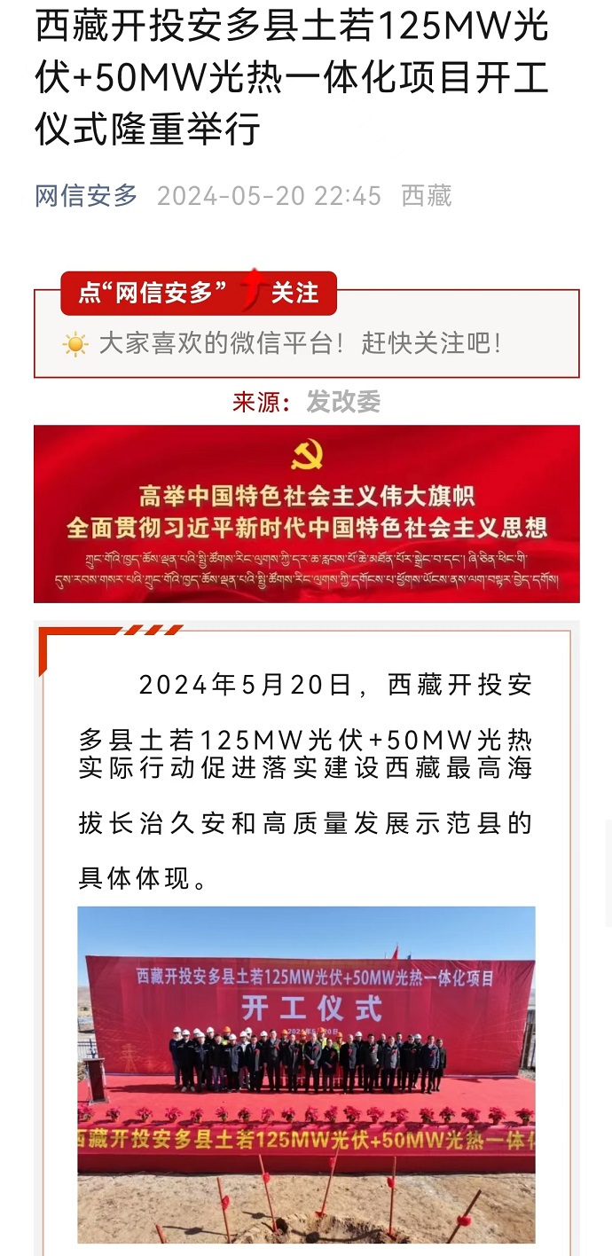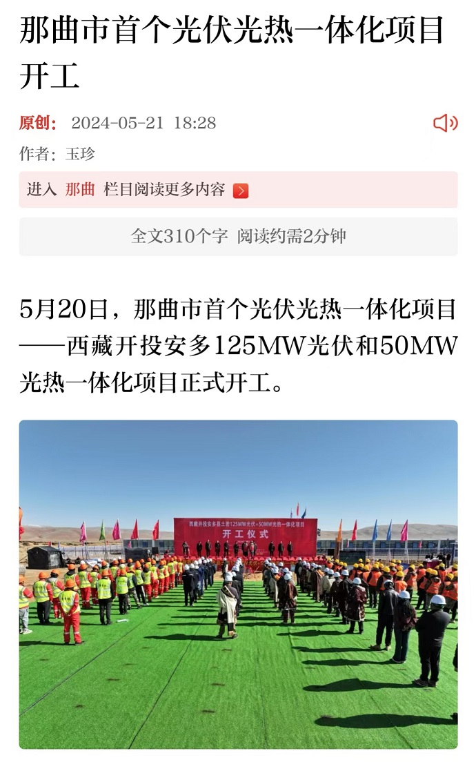 媒體報(bào)道丨那曲市首個(gè)光伏光熱一體化項(xiàng)目開工