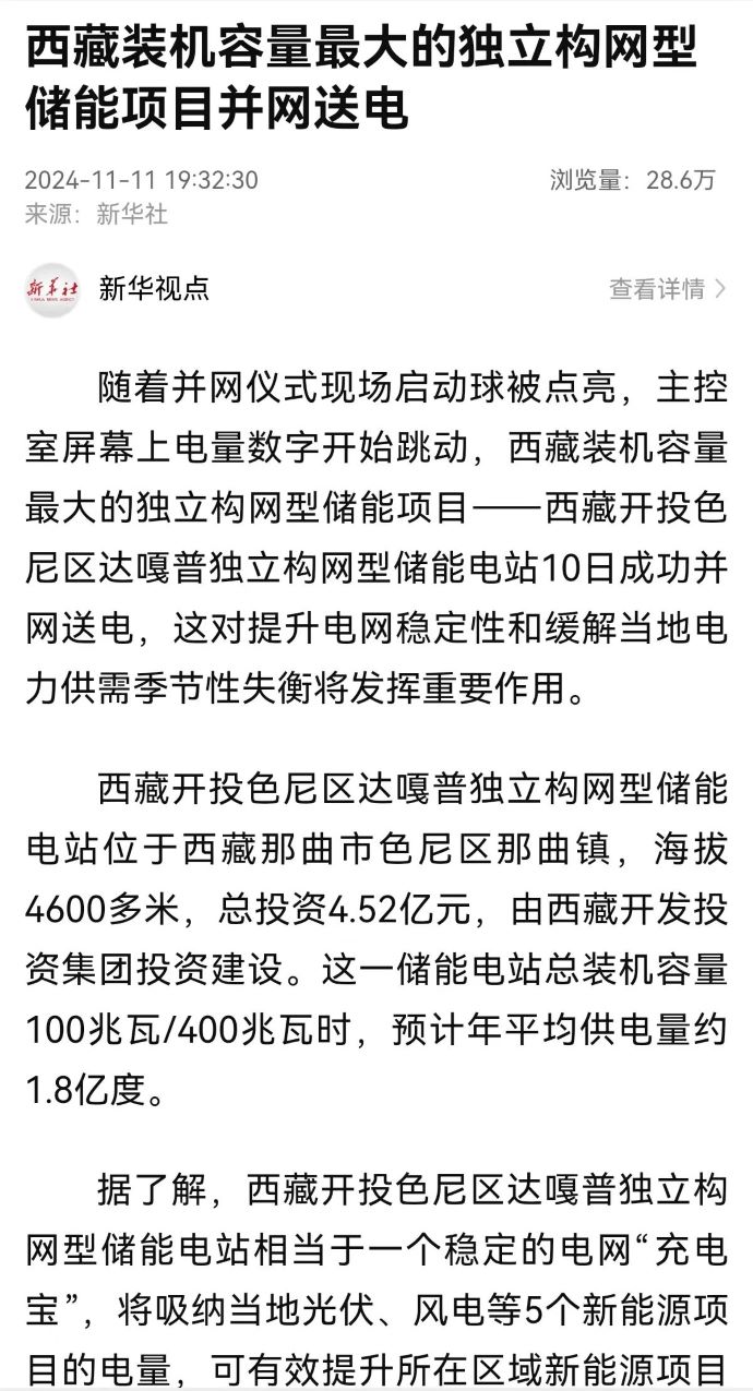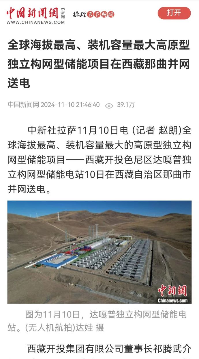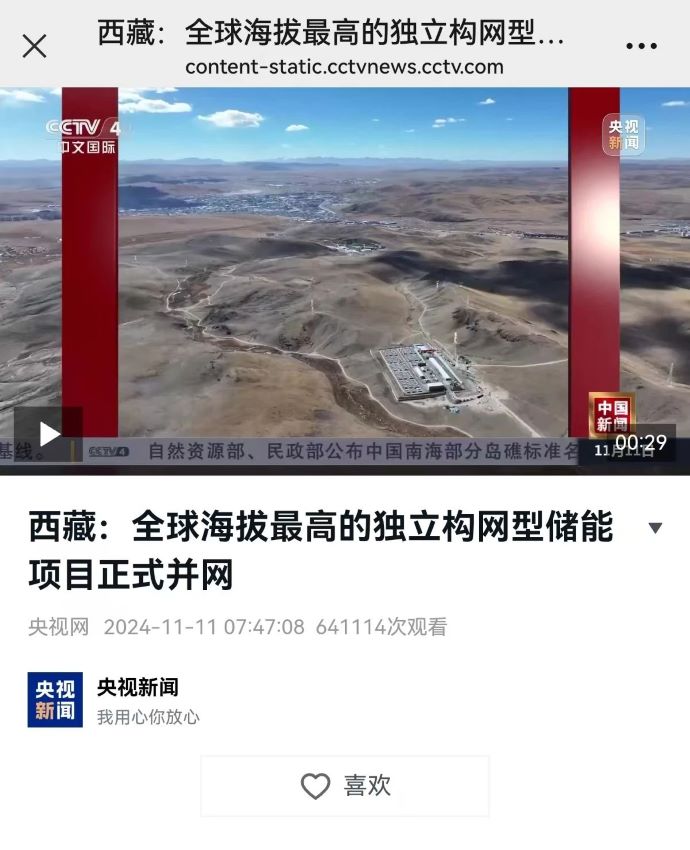 實力刷屏!各級媒體聚焦報道西藏開投色尼區(qū)獨立構(gòu)網(wǎng)型儲能項目