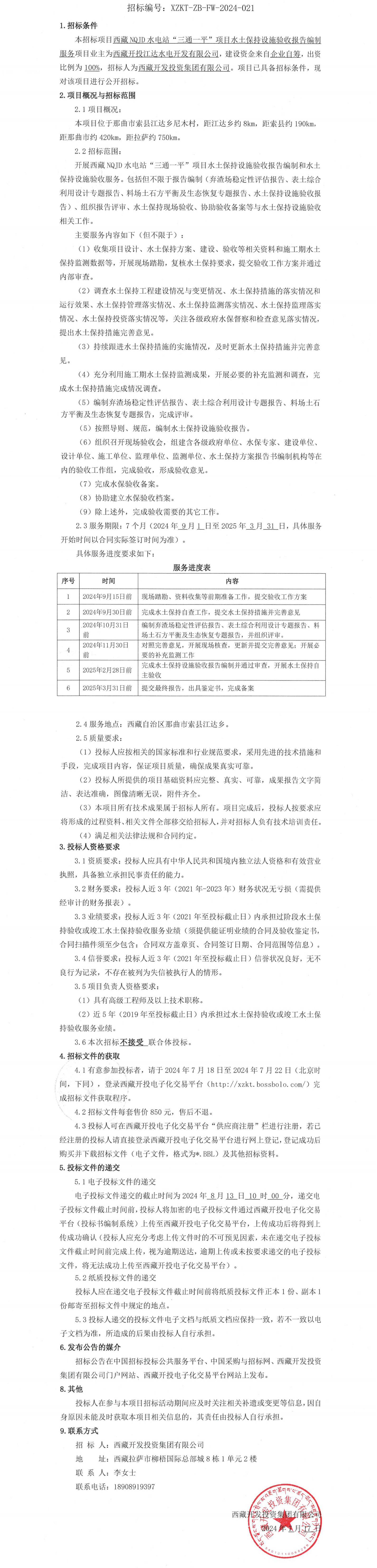 西藏NQJD水電站“三通一平”項目水土保持設(shè)施驗收報告編制服務招標公告