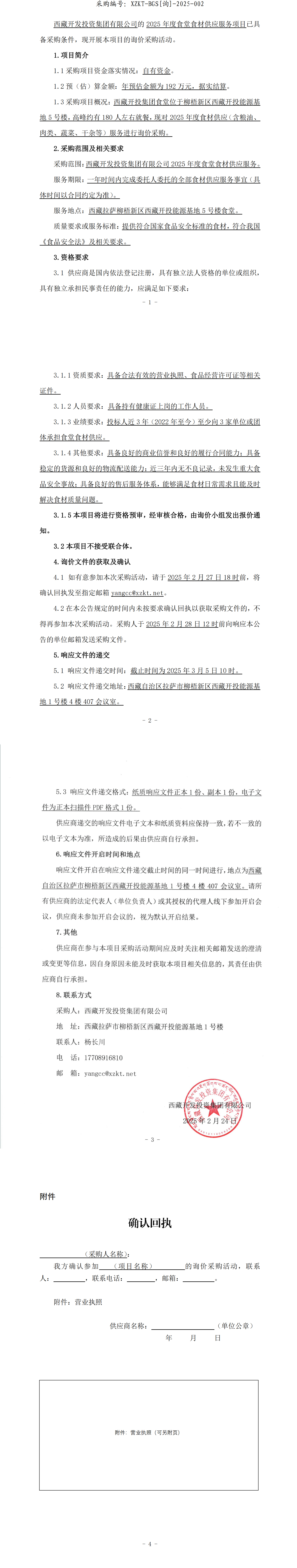 西藏開發(fā)投資集團(tuán)有限公司2025年度食堂食材供應(yīng)服務(wù)詢價(jià)采購公告