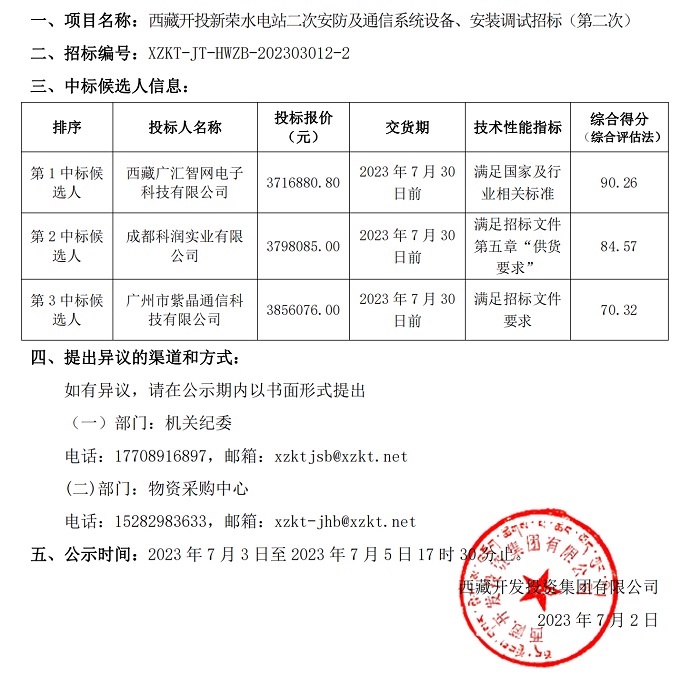 中標(biāo)候選人公示